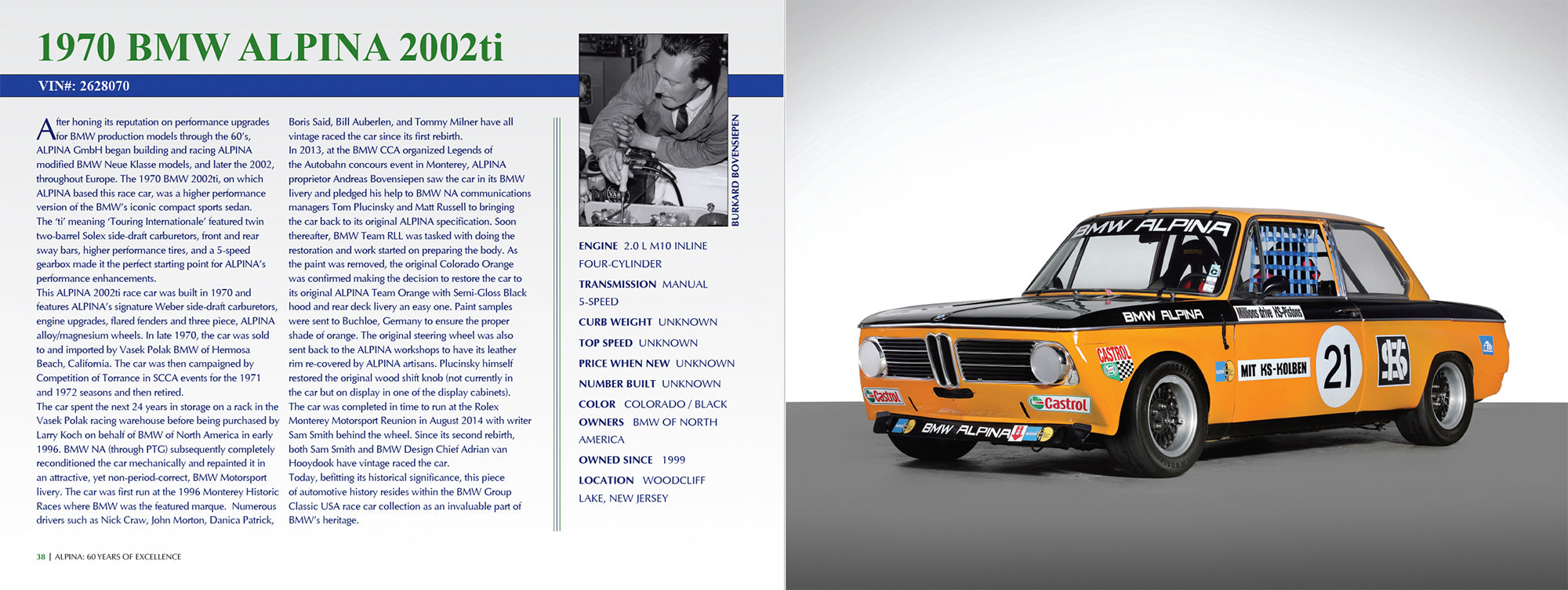 This 9x12 book features is loaded with stunning, high-resolution photography and richly illustrated content, the book meticulously charts the brand's incredible timelines and milestones, documenting its legacy of excellence over six decades by showcasing all 26 automobiles in the ALPINA: 60 Years of Excellence exhibit along with their owners.